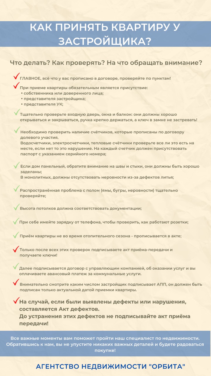 Чек -лист «Как принять квартиру у Застройщика» в Благодарность за Ваше время.